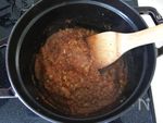 鍋にオリーブオイルを中弱火で熱し、にんにくと生姜を炒める。香りがたってきたら玉ねぎを入れて透明になるまで炒める。 B カレー粉 大さじ1、クミン(パウダー) 小さじ1 を加えて再び香りがたつまで炒めたら、Cトマト缶 1/2缶(200g)、パクチー(チューブ) 小さじ2、コンソメ顆粒 小さじ1 を加えて混ぜながら3~4分煮立たせる。 |