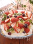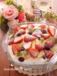 C いちご 適宜、お好みのフルーツ 適宜 をトッピングして出来上り。今回はいちご、パイナップル、ベリーを使用。 |
