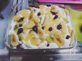 スポンジを半分に切ります。キャセロール型に敷き詰めます。冷めたシロップを刷毛で塗ります。 | |