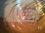 ⑤の生地の一部を②のミルクバターに入れて混ぜる。この時ミルクバターの温度は50度になるように。 | |
