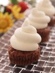 綺麗に混ざったら、マフィン型に入れます。オーブンの天板の一回り小さい天板に湯煎用の湯をはり、湯煎焼きします。オーブンの温度は180度で25分です。焼けたら竹串を刺してどろっとした生地がついていなければ完成。ケーキクーラーの上で冷まします。 | |