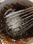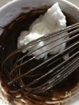 耐熱ボールにA 生クリーム(動物性) 50cc、ミルクチョコレート 80g を入れ、レンジで加熱します。今回は600wで約2分加熱。沸騰しないように注意します。溶けたらB無塩バター 30g を入れて混ぜます。 |