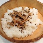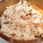 炊き立てのご飯にはもを混ぜる。(煮汁も混ぜる) | |