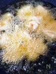揚げ油を中温(160度から170度・・菜箸を油に入れて細かい泡が立ってくる状態)で熱して鶏肉を入れます。鶏肉が浮いてくる、5分〜6分ぐらい揚げます。 | |