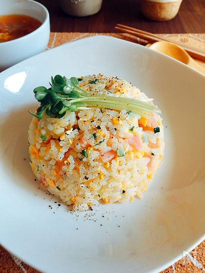 お家の冷蔵庫にいつもあるハムで 今日のランチは炒飯です❣️ ご飯をマヨネーズでコーティングして しっとりしているんだけど パラパラの炒飯を作ります(^-^) しかも、旨味もプラスされて また、食べたくなる味付けになります。 もやしと卵の中華スープも作りました♡