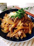 ・豚こま切れ肉に、食べやすい大きさに切り、酒(小さじ2)をもみこんでおきます。 ・大根は5mm幅の輪切りにして、縦に1cm幅に切ります。 ・A しょう油 大さじ2、みりん 大さじ1、砂糖 大さじ1/2、カレー粉 小さじ1強、水 大さじ3 で合わせ調味料を作ります。 |