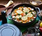 【パエリア=ムール貝】と思う時ほど、なかなか見かけないのは土地柄?身近な魚介とお肉で仕上げるのが我が家流♡