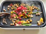 ホットプレートに分量外のオリーブオイル大さじ1を中火で熱します。 | |