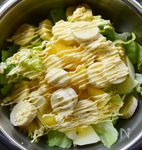 レタス半量→果物類半量→マヨネーズの順で重ねてサッと和えます。 | |