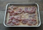 下準備した鶏肉を4等分に切り、A シャンタン 小さじ1/2、塩 小さじ1/2、生姜すりおろし 小さじ1、にんにくすりおろし 小さじ1/2、豆板醤 小さじ1/2、コショー 少々、牛乳 100ml に常温で30分漬け込みます。※漬け込みは30分以上必須です。前夜や朝に漬け込んで冷蔵保存でも可能です。 |