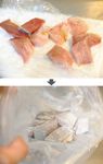 ブリは骨を取って軽く塩胡椒をしたら1切れを3等分にカットし、A 片栗粉 大さじ1、薄力粉 大さじ1 をまぶす。※袋でまぶすと楽です。 ※骨取りは【おまけ】参照。 |