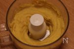 2の安納芋と1のりんごをフードプロセッサーにかけ、なめらかにする。一口大とり、ラップかカーゼで絞ると可愛いです。 |