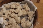 蒸しあがったら、やけどに注意しながら布巾を使って、生地をひとまとめにする。 | |