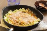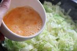 キャベツがしんなりしたら、卵を溶き入れて、蓋をして、卵が固まで弱火で加熱する。 | |